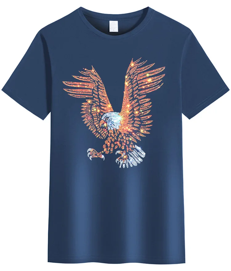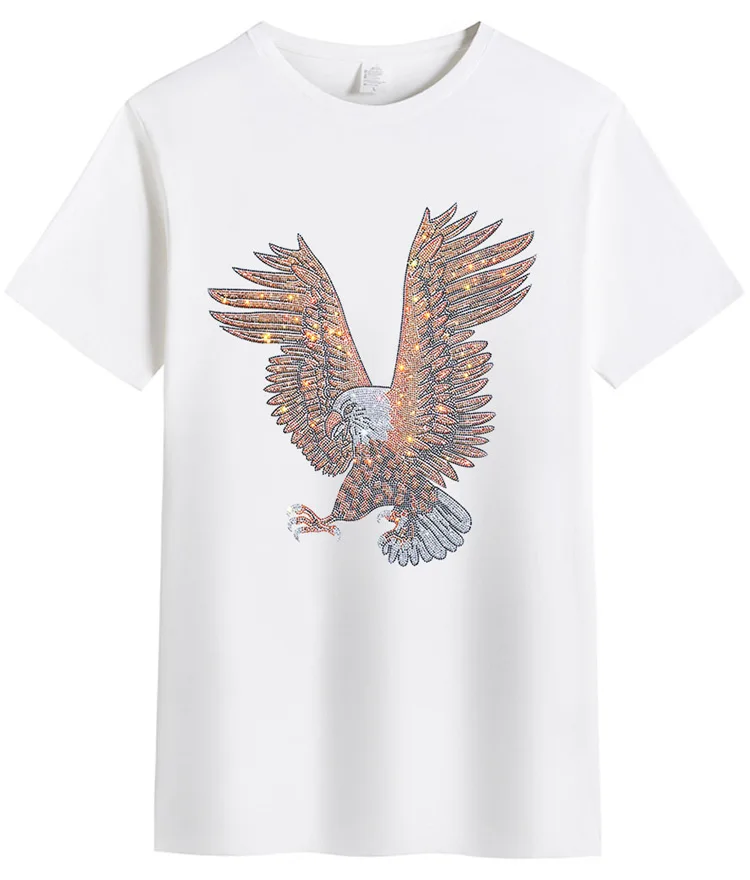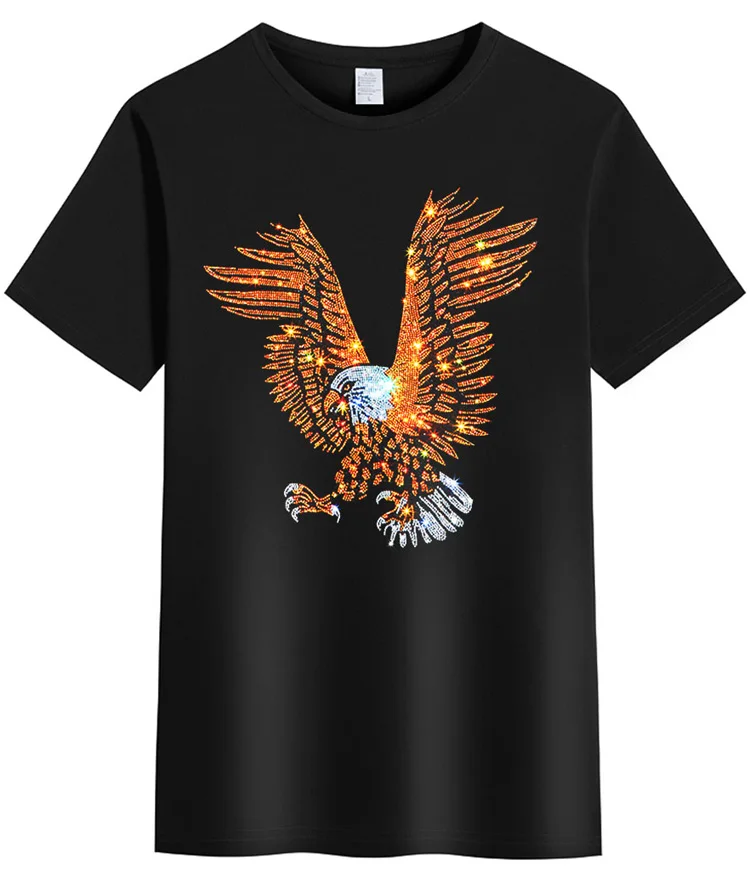 Show off bold style with this Men’s 3D Rhinestone Eagle T-Shirt, designed for summer comfort and standout streetwear appeal. The detailed eagle print with sparkling rhinestones adds a unique edge, making this short sleeve graphic teeperfect for casual wear, parties, or everyday outfits. Crafted from soft, breathable fabric, it keeps you cool while delivering a sharp, modern look. Pair this men’s rhinestone t-shirt with jeans, joggers, or shorts for the ultimate casual fit.